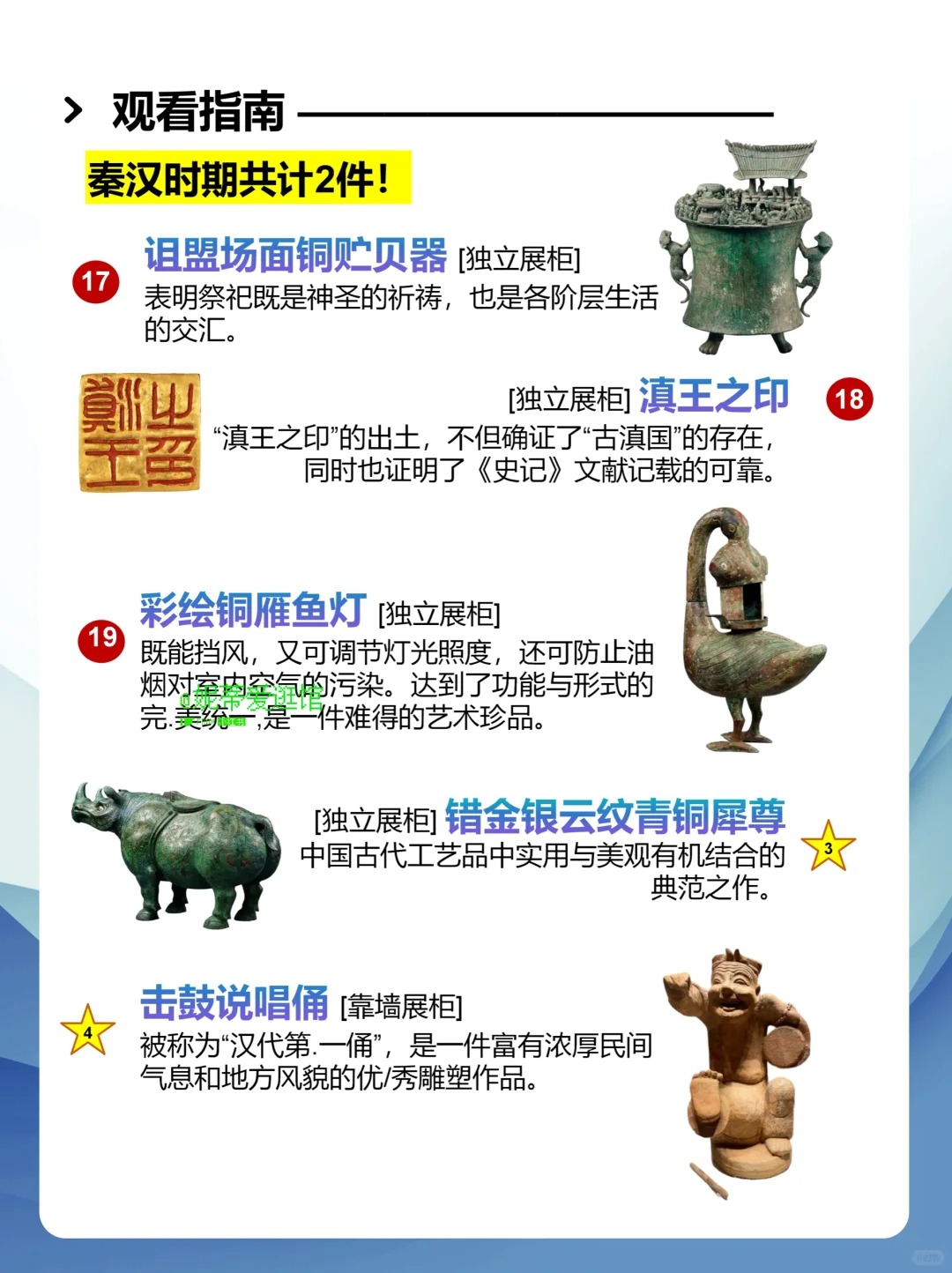 | “滇王之印”金印 | 独立展柜,显眼好找 | 西汉/黄金/云南晋宁 |