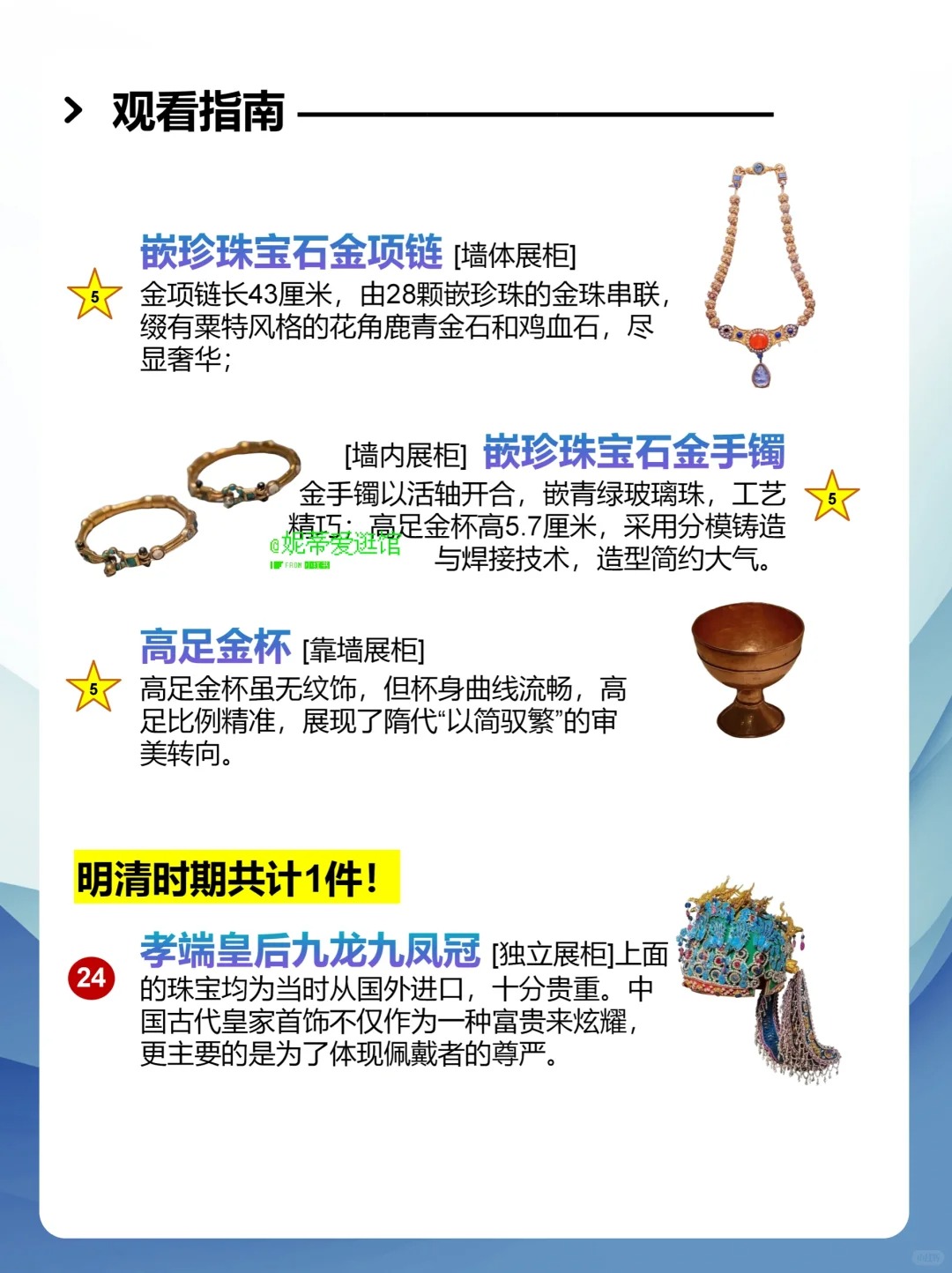 - 参观时长:全部 24 件镇馆之宝完整参观约需 4-5 小时,建议重点选择感兴趣的时期