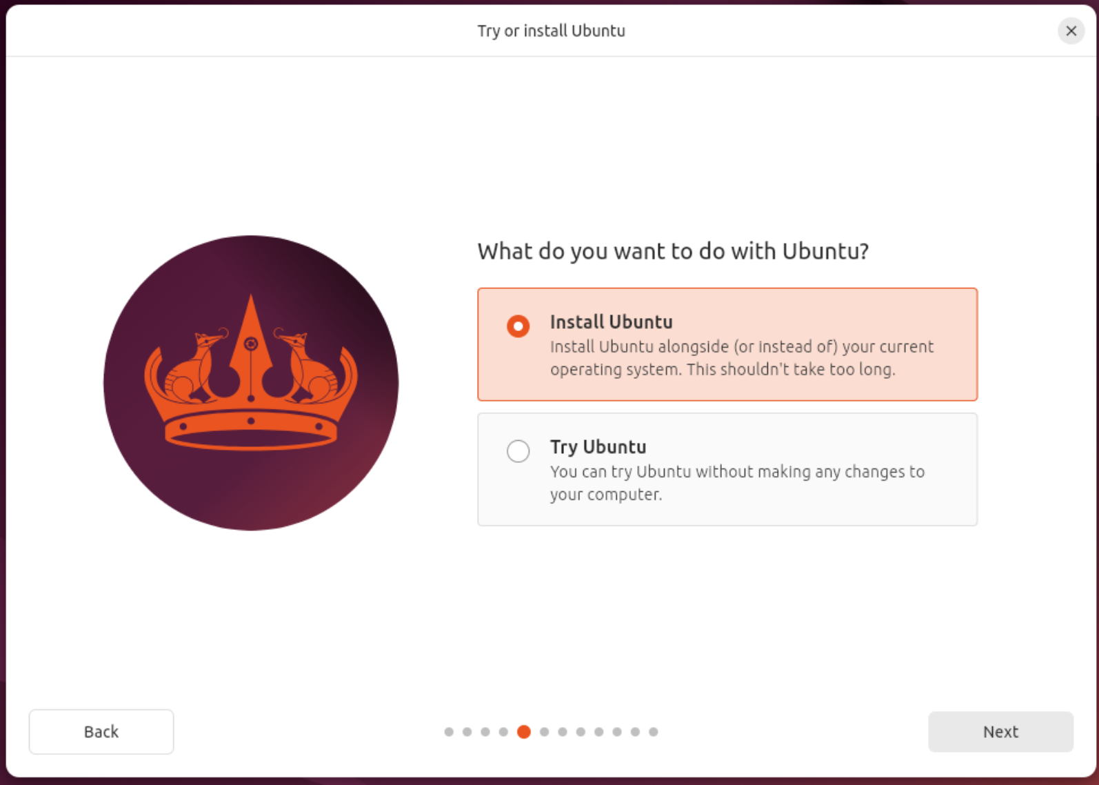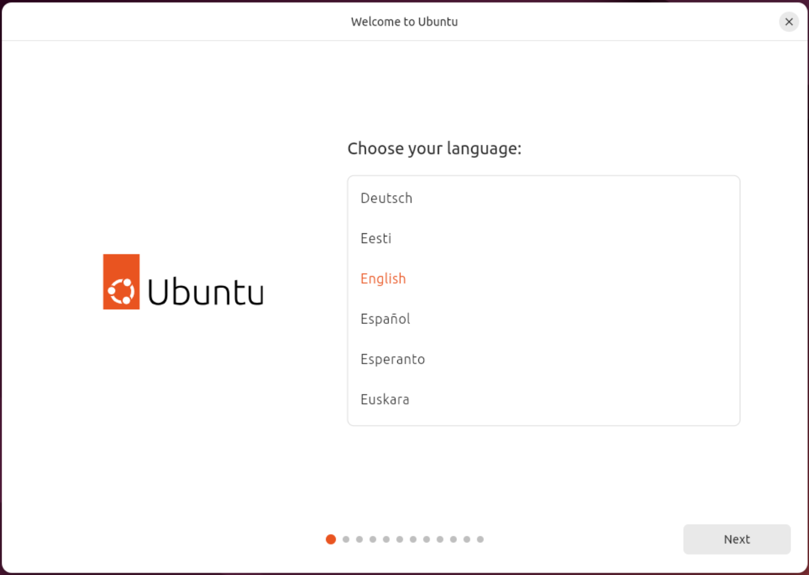 此时,屏幕会显示带有 Ubuntu Logo 的加载界面,随后进入安装向导。
