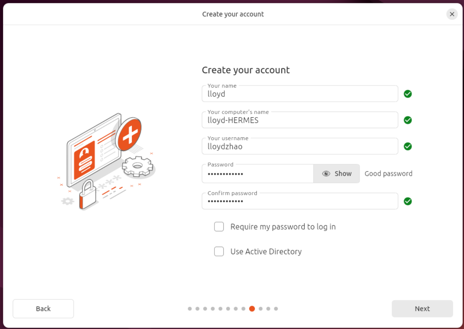 - 设置登录密码。请牢记此密码,在后续的系统操作和软件安装中(如使用
